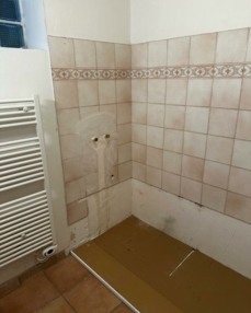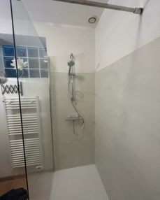 Rénovation d’une salle de bain en béton ciré à Sainte-Marie.
